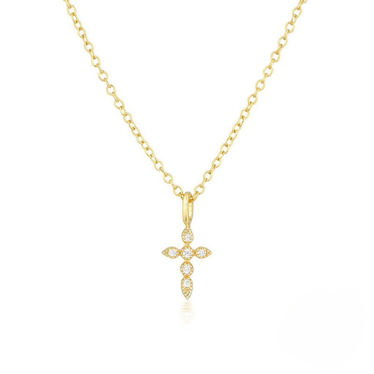 Ilumine seu visual com o Colar Brilho Sagrado, um acessório que traz consigo delicadeza e sofisticação. Com uma cruz detalhadamente adornada com pequenas pedras cravejadas, ele reflete uma elegância discreta, ideal para o dia a dia ou ocasiões especiais. Perfeito para quem busca uma peça versátil e com um significado espiritual atemporal.