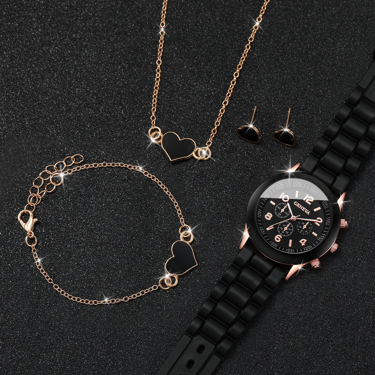 Não apenas um acessório, mas um conjunto encantador que inclui brincos, colar e pulseira em formato de coração.