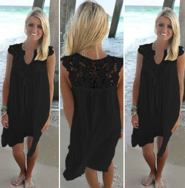 Esta saída de praia é maravilhosa para férias na praia e festas! Vestido pregueado cheio e com detalhes de renda delicada na frente e nas costas. Leve e perfeito para jogar sobre o seu biquíni ou gusar com saltos para uma noite especial.